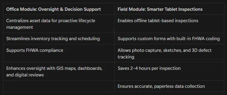 Asset Lifecycle Management transcends mere maintenance; it is a sustainability-focused, proactive, and innovation-driven strategy for building smarter, more resilient infrastructure. With the right technologies, data integration, and collaboration, bridge inspectors and agencies responsible for Bridge Inspection and Maintenance, adhering to National Bridge Inspection Standards, can extend asset life, reduce risk, and deliver better outcomes for communities
