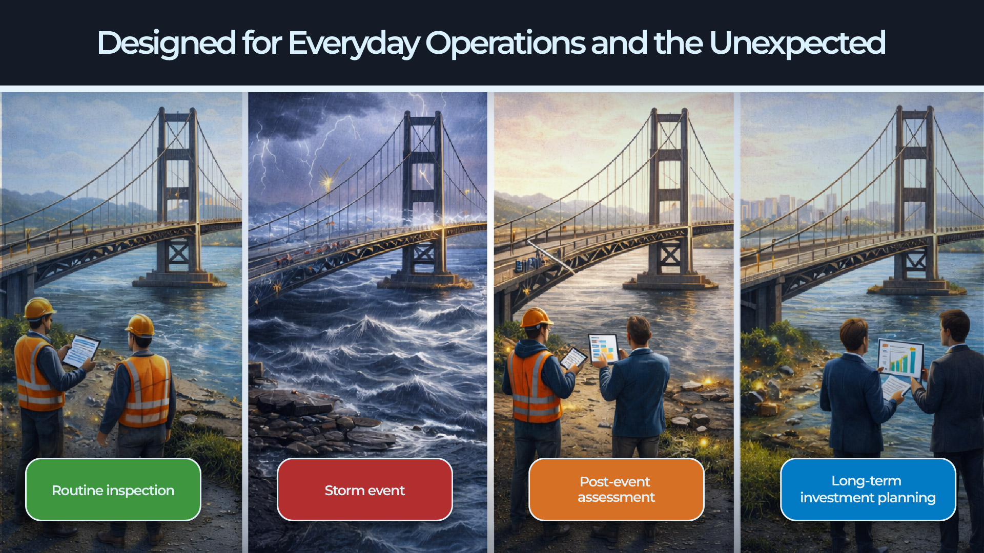 Agencies, now, need platforms that connect inspections, emergency response, and capital planning across all assets.